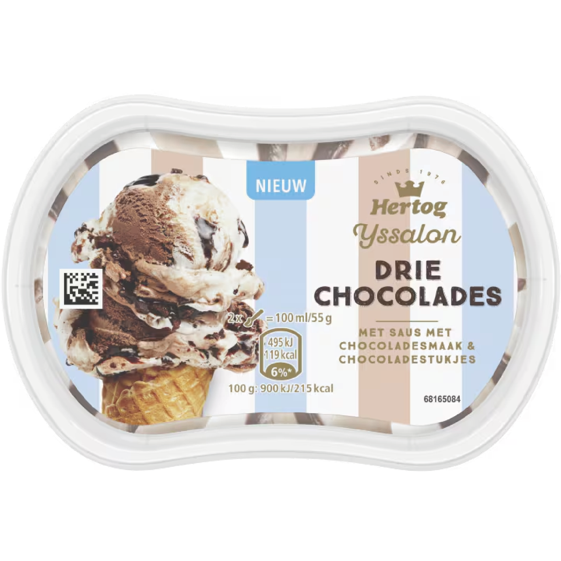 Hertog drie chocolades mini ijssalon - roomijs van witte chocolade, melkchocolade en pure chocoladesaus: een traktatie voor chocoladeliefhebbers.